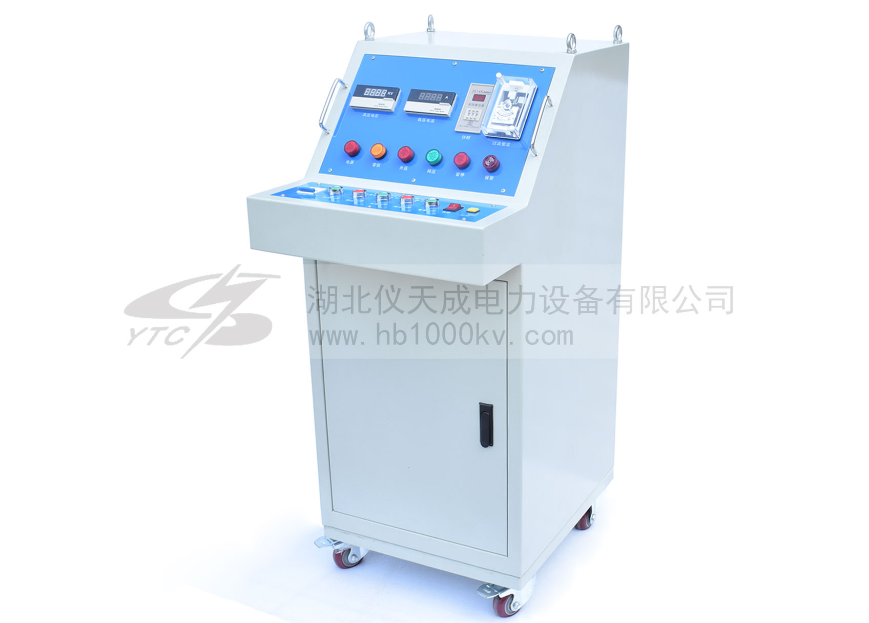 把電源輸入有過流自動脫扣及防止突發(fā)加壓的零位連鎖裝置的操作箱,經(jīng)自耦調(diào)壓器調(diào)節(jié)電壓輸入YDQ充氣式試驗變壓器初級繞組,根據(jù)電磁感應(yīng)原理,在次級(高壓)繞組按其與初級繞組匝數(shù)之比可獲得同等倍數(shù)的電壓幅值-工頻高壓。