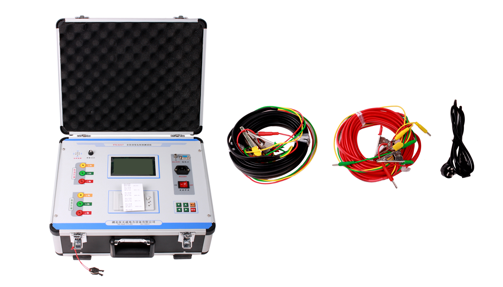 京德美訊通電子有限公司本次采購的設備清單如下:YTC2830大型地網接地電阻測試儀、YD-JC-6kVA/50kV交流耐壓試驗變壓器、YTCZG-120kV/5mA直流高壓發生器、YTC316-10直流電阻測試儀、YTC3317全自動變比組別測試儀等一批。