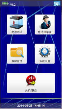 3、SD卡圖標:如上圖右上角,插入SD卡時有圖標顯示,未插入SD卡沒有圖標顯示。(注意:若未插入SD卡,此時進入“電池測試”“電池組管理”“數據管理”三個菜單時系統會提示“存儲卡不存在!”,只有SD卡插入有效時才允許以上操作。)