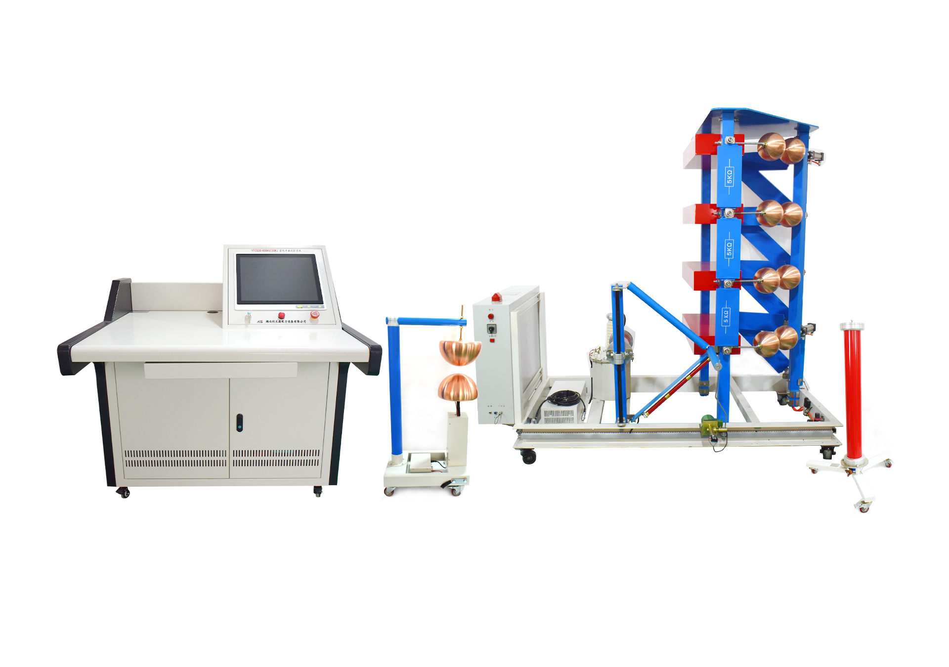 1. 測量顯示量:包括直流充電電壓、變壓器原邊電流以及發生器本體球隙距離等參數。