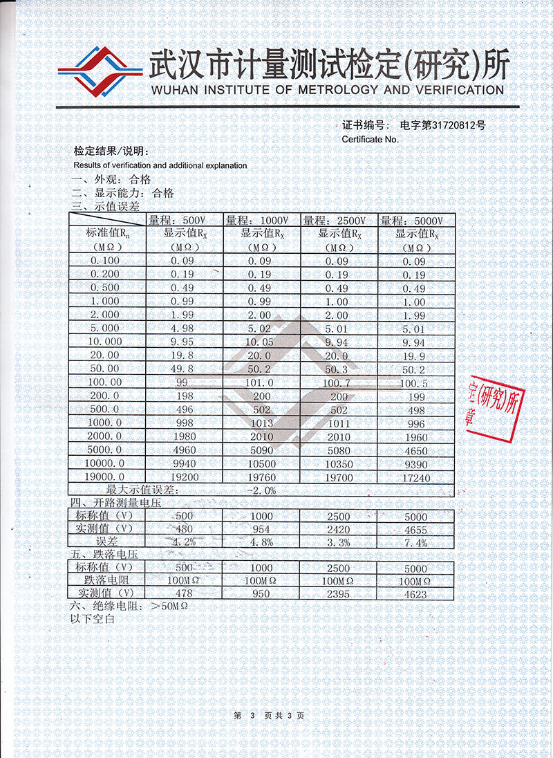 1000V 20000 1-1000 起始為1MΩ